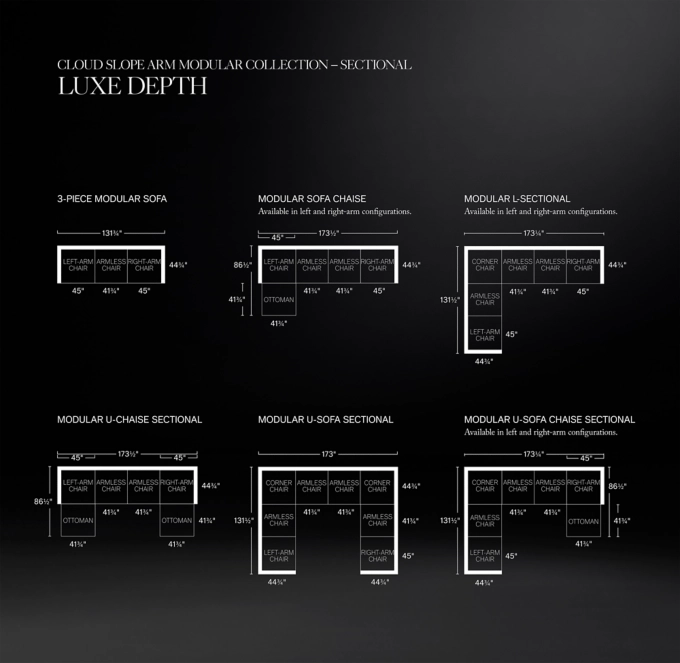 Cloud Modular Slope Arm 3-Piece Sofa