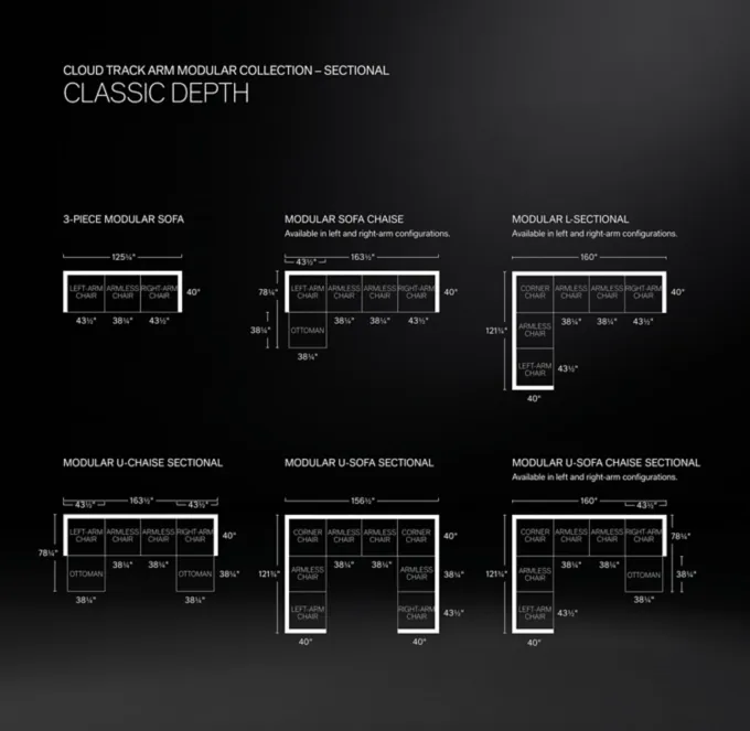 Cloud Modular Track Arm 3-Piece Sofa