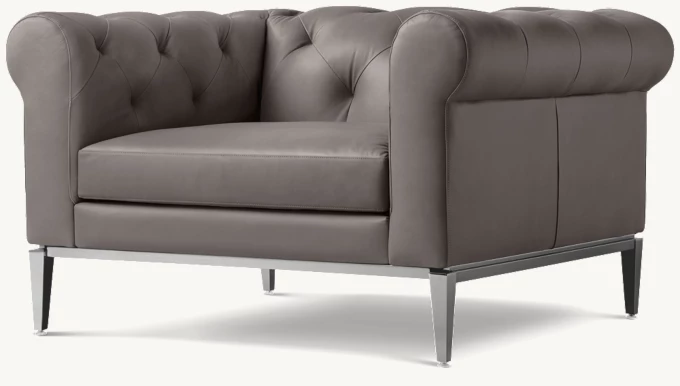 Italia Chesterfield Leather Chair - Metal Base