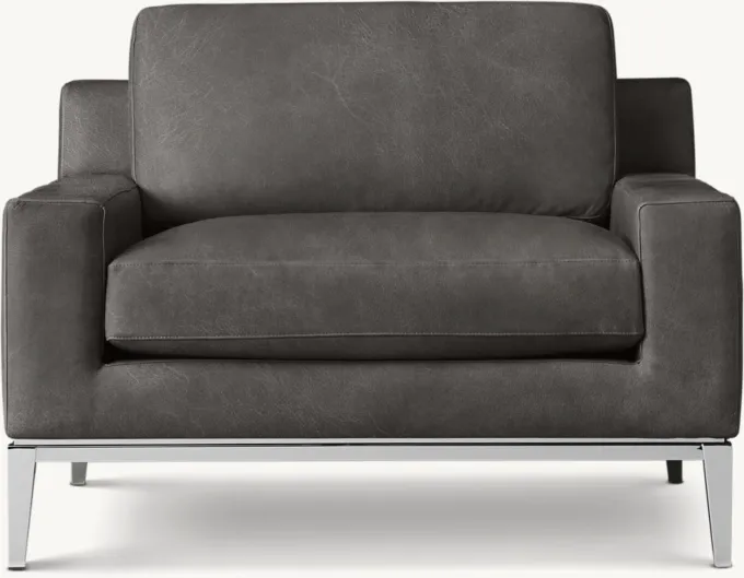 Italia Track Arm Leather Chair - Metal Base