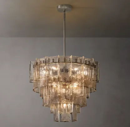 Lattice Clear Glass Tiered Round Chandelier 36"