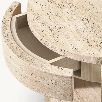 Wyeth Travertine Round Bedside Table